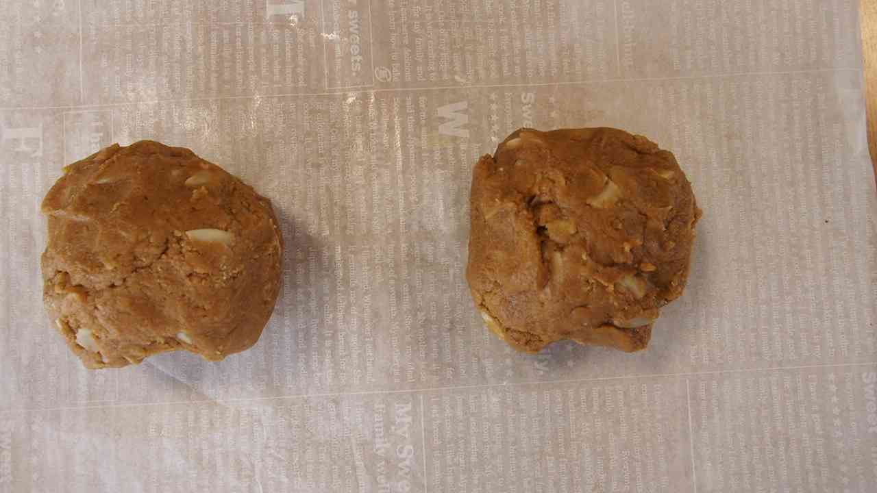 テフロン加工のされた天板に等間隔をあけて並べる。- 5