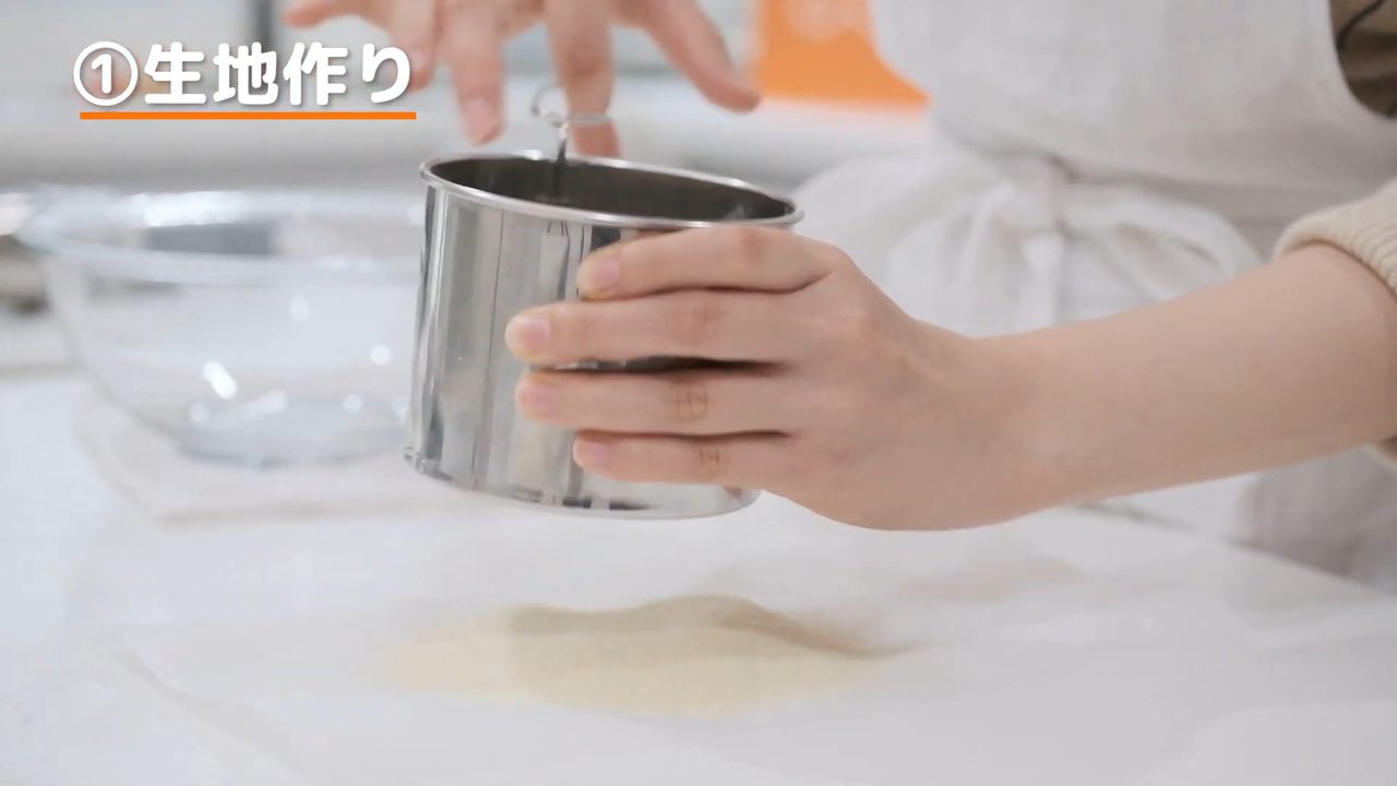 アーモンドパウダーとベーキングパウダーをふるう。- 2
