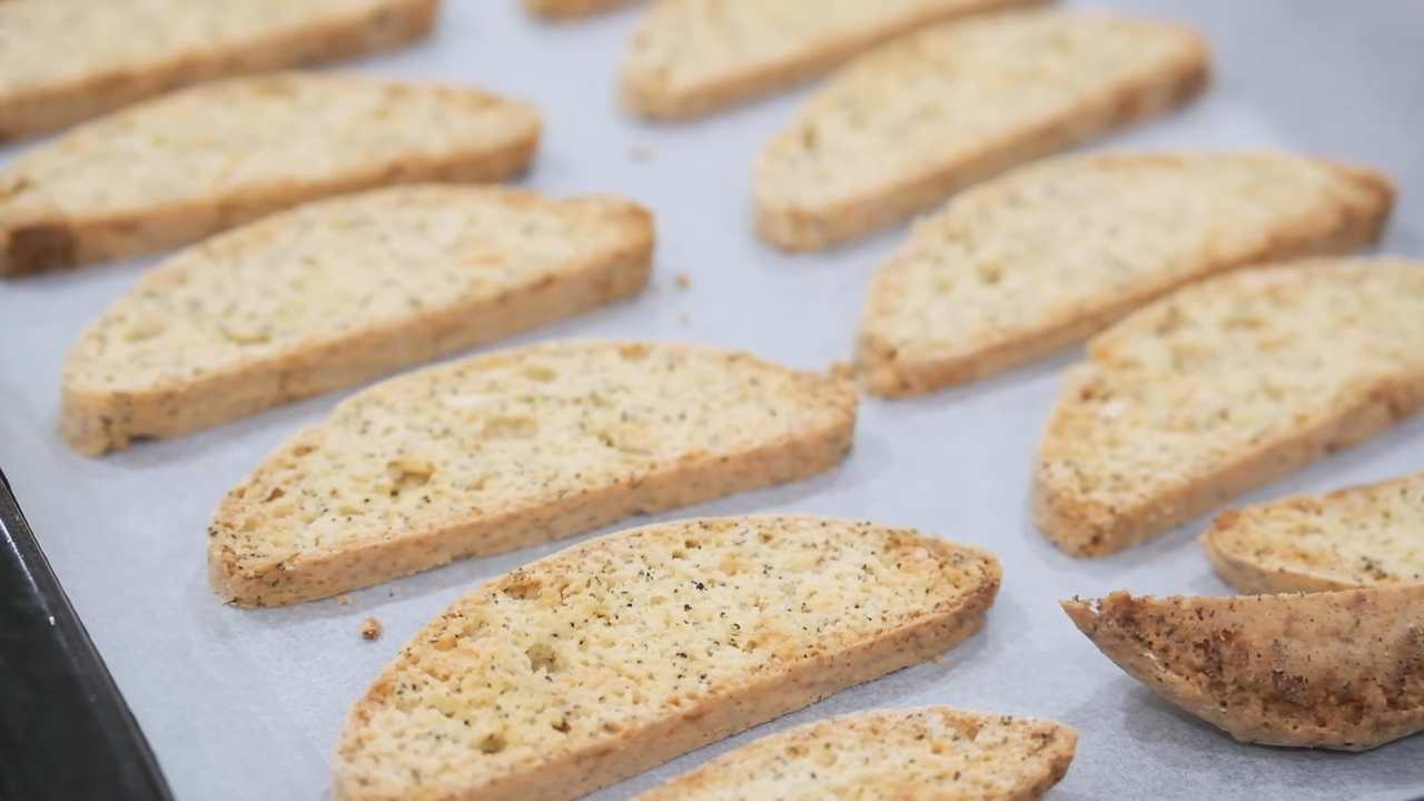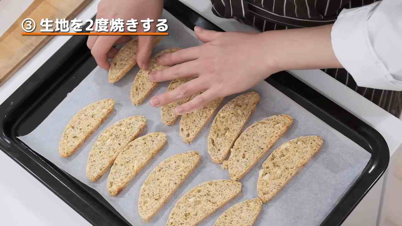 カット面を上にして再び天板に並べ、150℃のオーブンで13〜15分間焼く。- 10