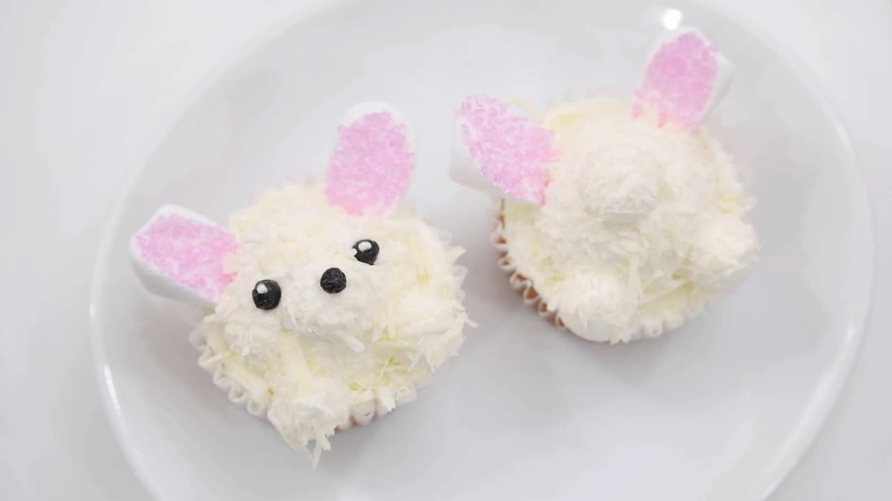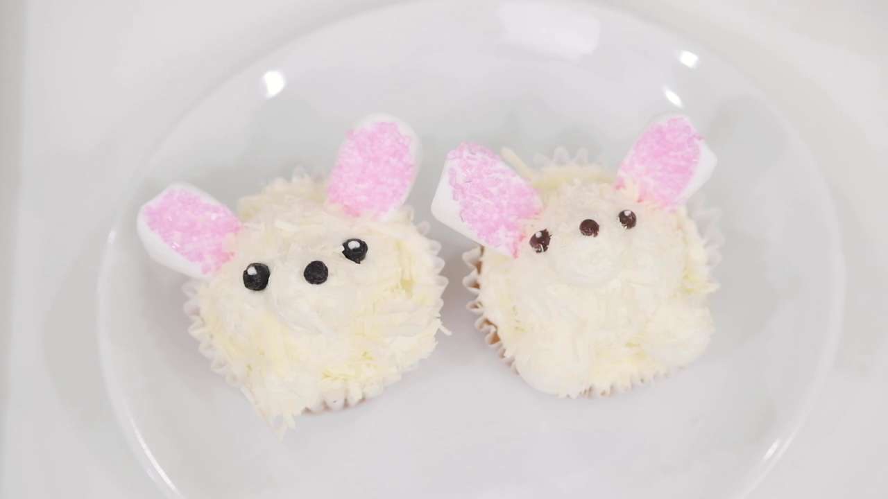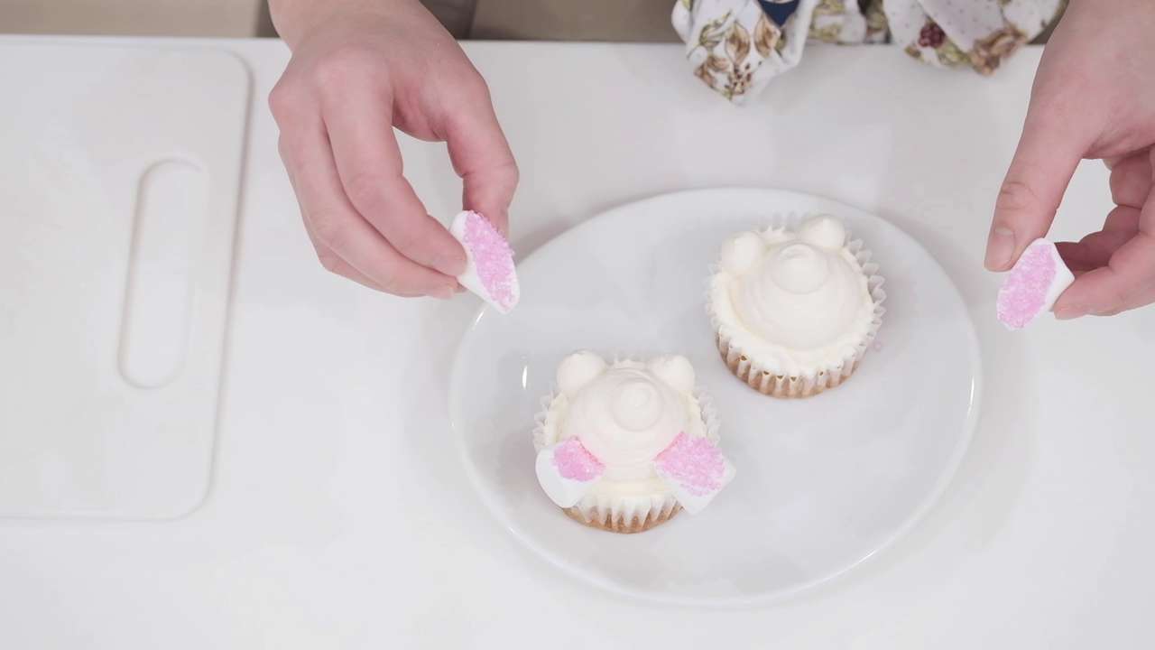 カットしたマシュマロをウサギの耳になるように差し込む。