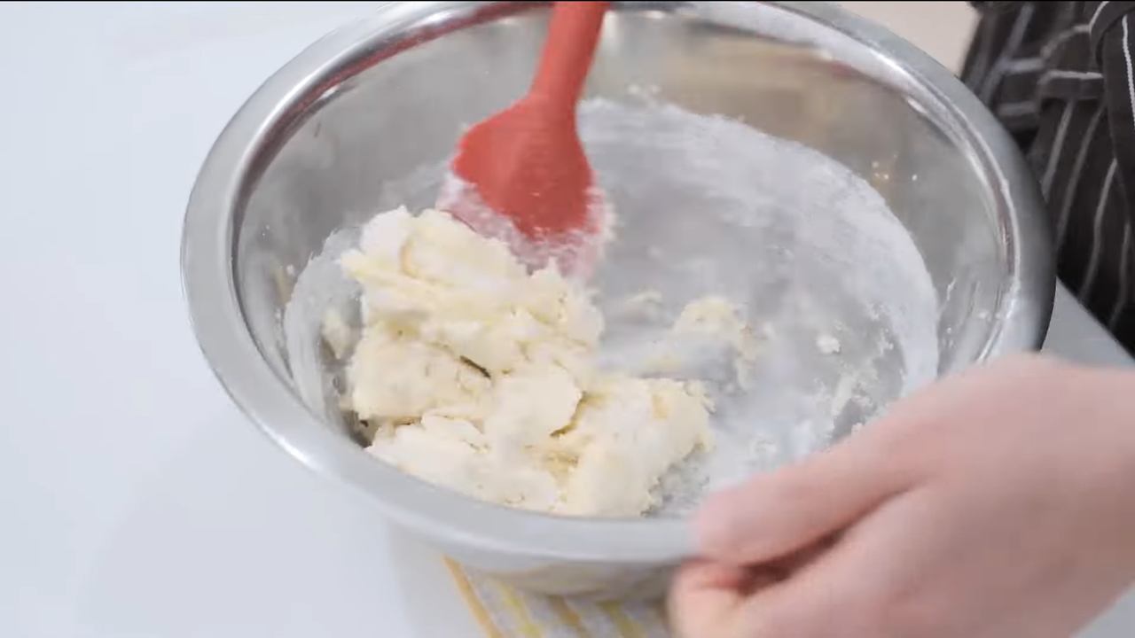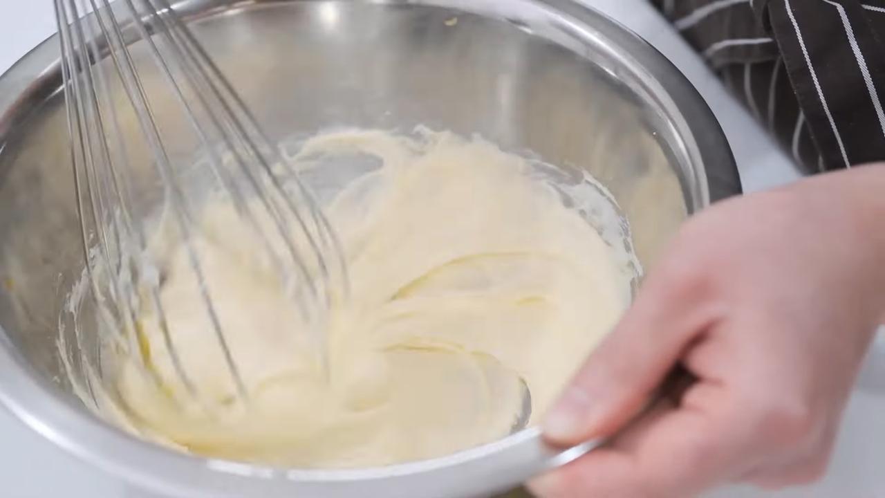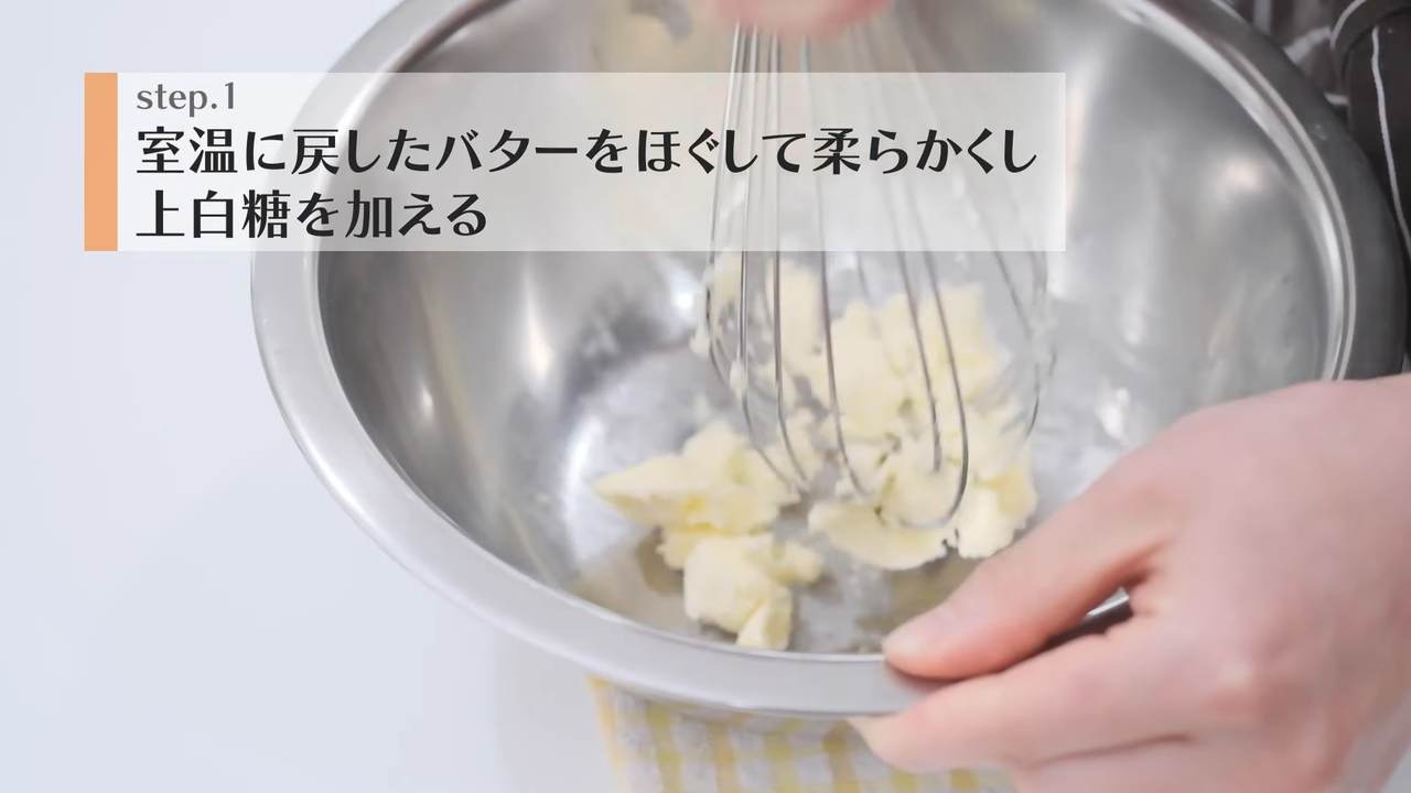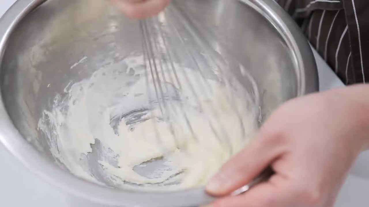 室温に戻したバターを泡立て器でほぐして柔らかくする。- 2