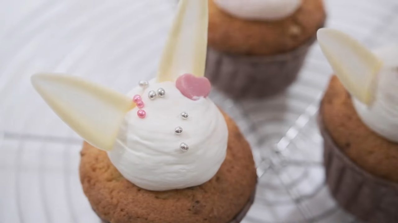 耳の飾りを乗せ、チョコレートやアラザンなどでデコレーションする。