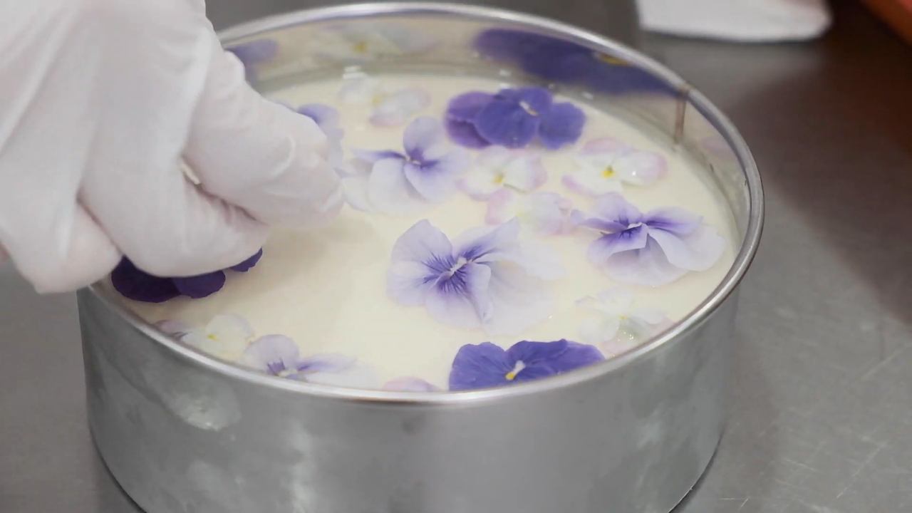エディブルフラワーのチーズケーキの作り方!ゼリーの中の花びらが可愛い