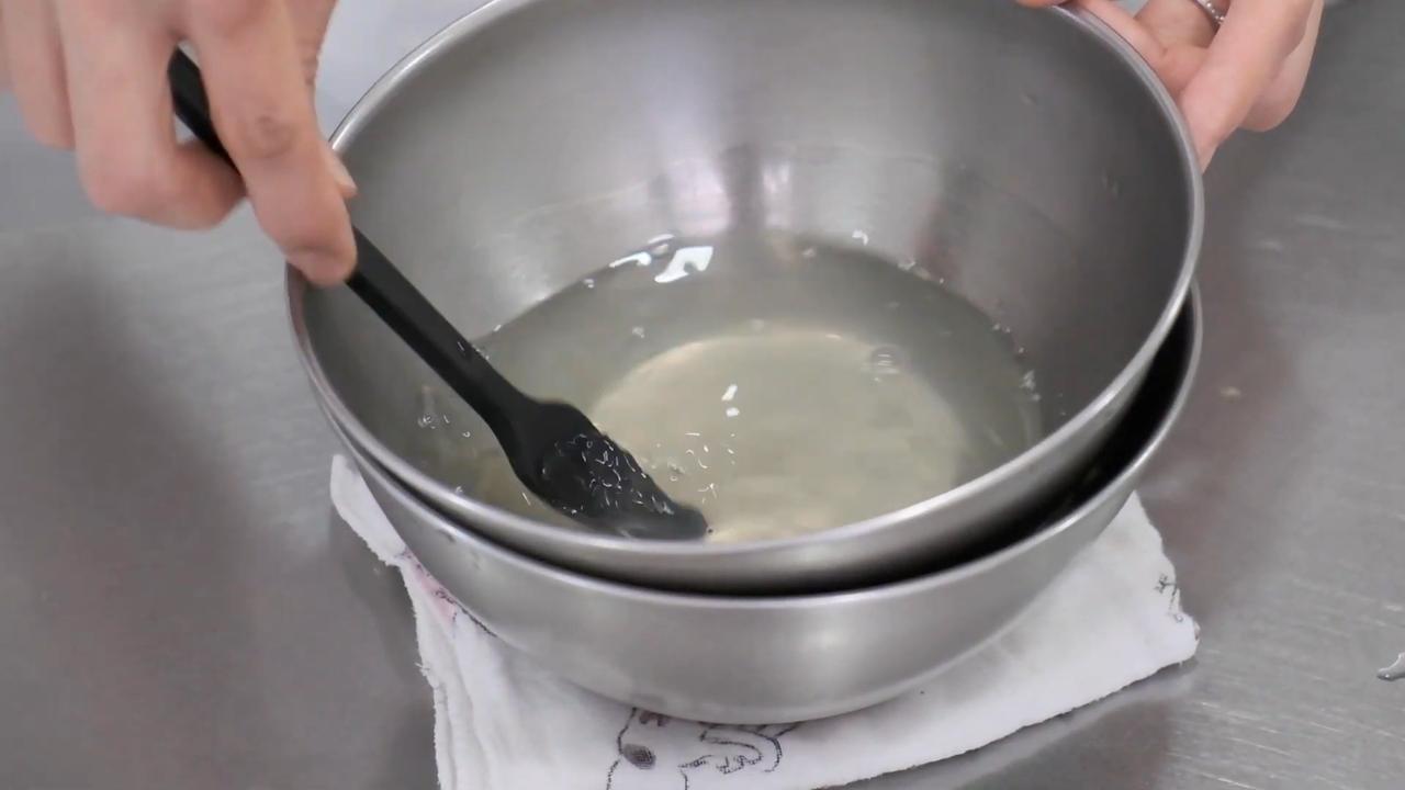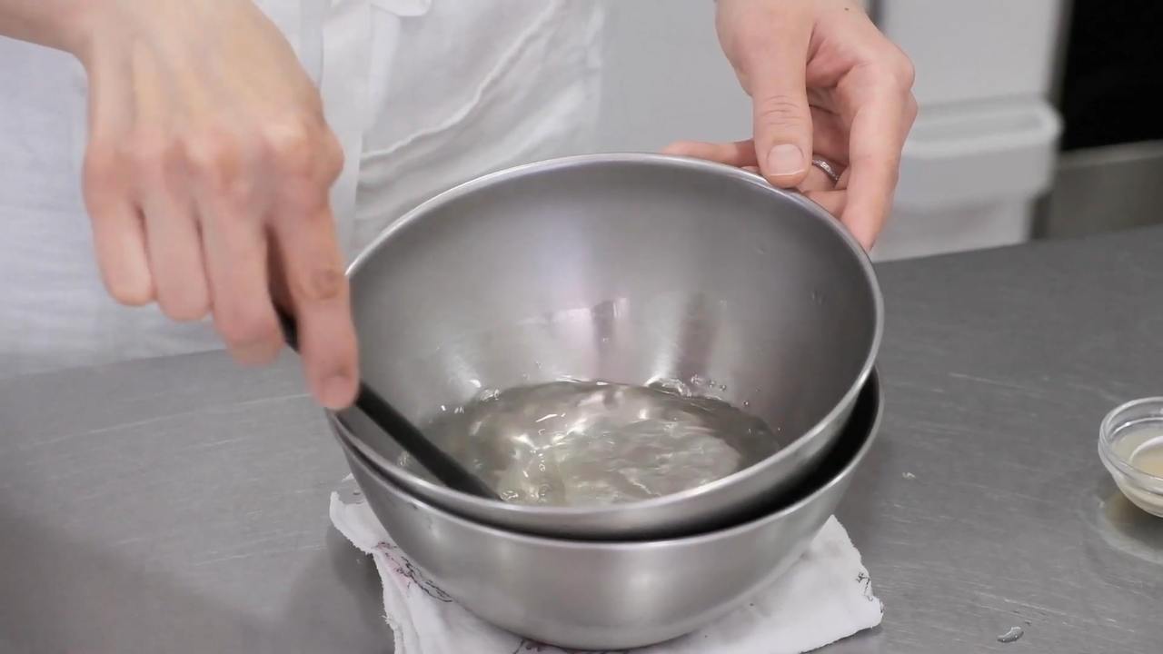 ボウルに漉しながら流し、氷水に当てて冷やす。- 5