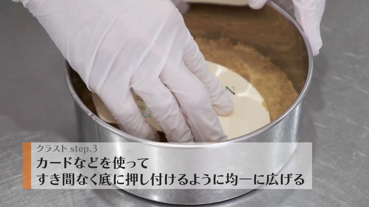 カードなどを使って、すき間なく底に押し付けるように均一に広げる。- 4