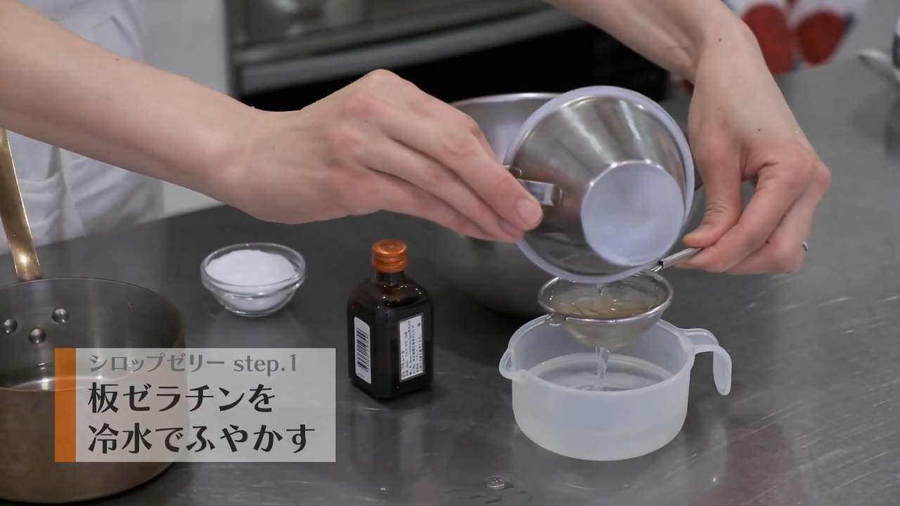 板ゼラチンを冷水でふやかして水気をよく切る。- 5