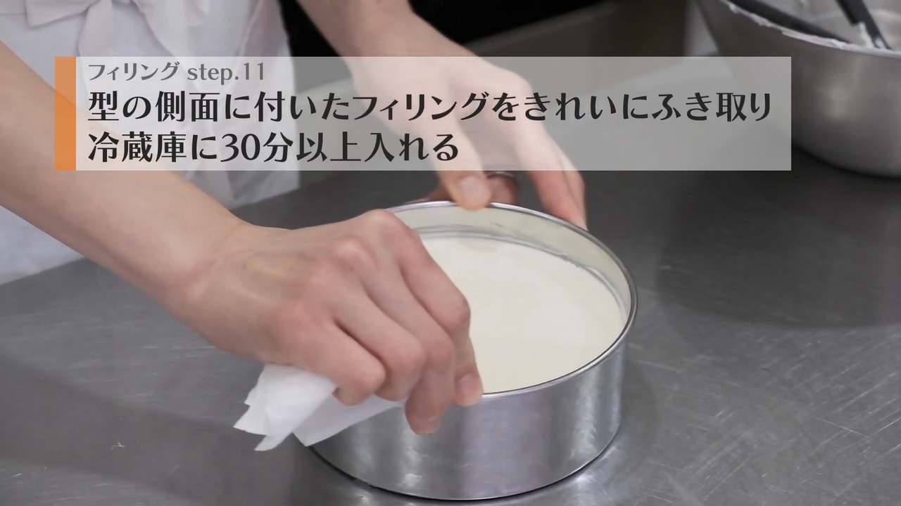 型の側面に付いたフィリングをきれいにふき取り、冷蔵庫に30分以上入れる。