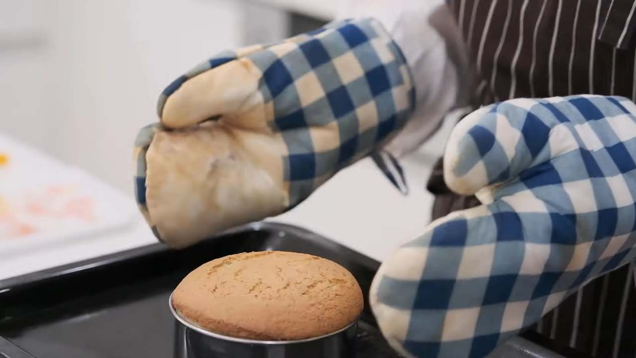 オーブンから取り出し、型にショックを与えて粗熱を取る。