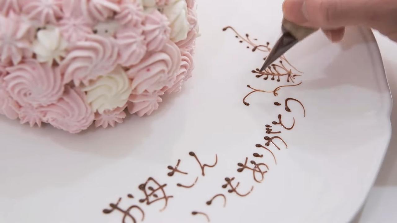 溶かしたチョコレートを流し入れ、先端をまっすぐにカットしてメッセージを絞る。