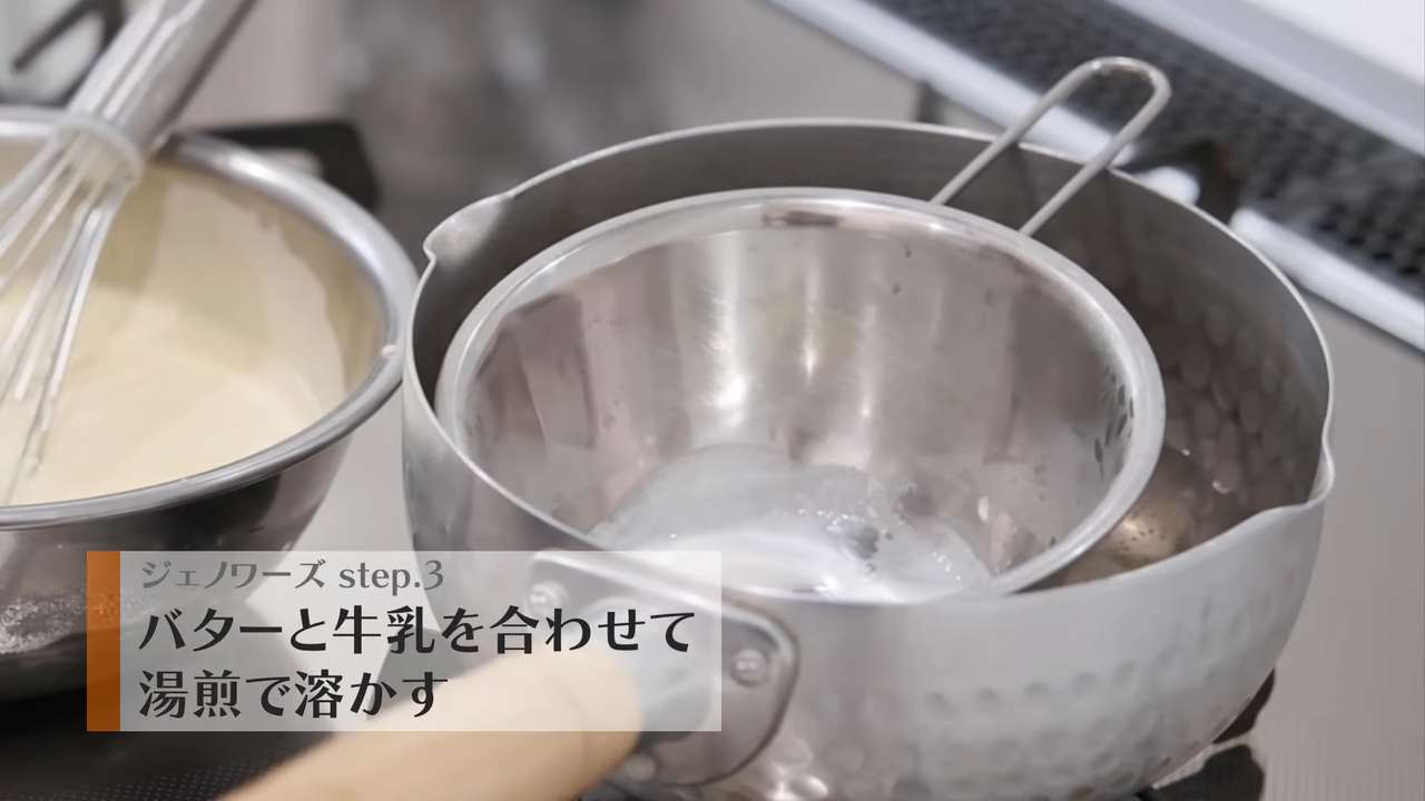 バターと牛乳を合わせて湯煎で溶かす。- 4
