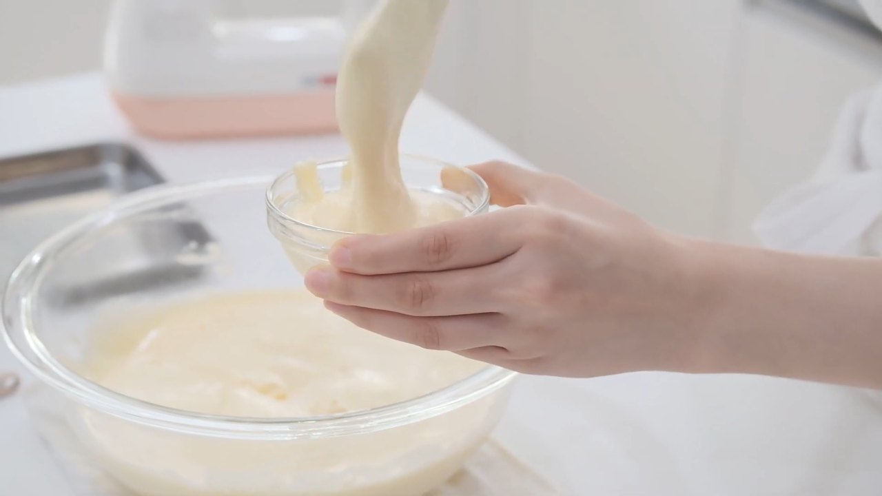 ※生地を持ち上げて落ちた跡が残る位の硬さが目安。- 2