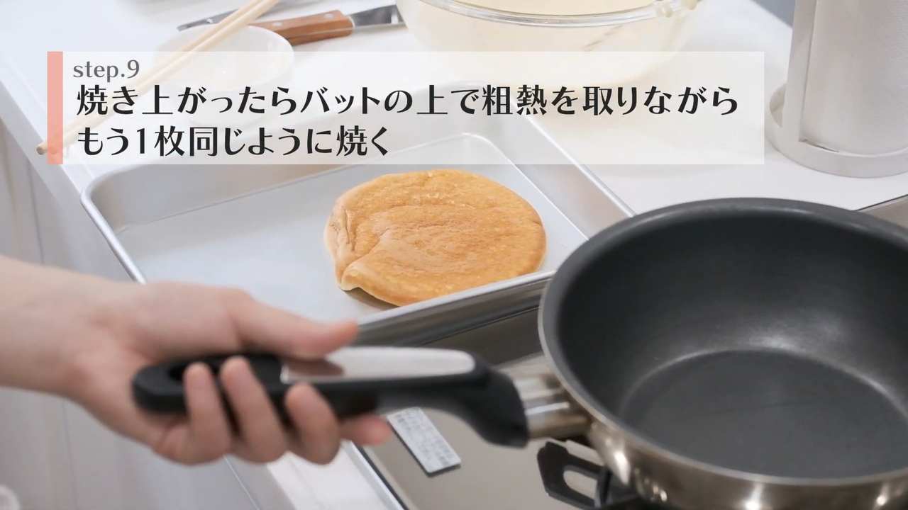 焼き上がったらバットの上で粗熱を取りながら、もう1枚同じように焼く。- 5