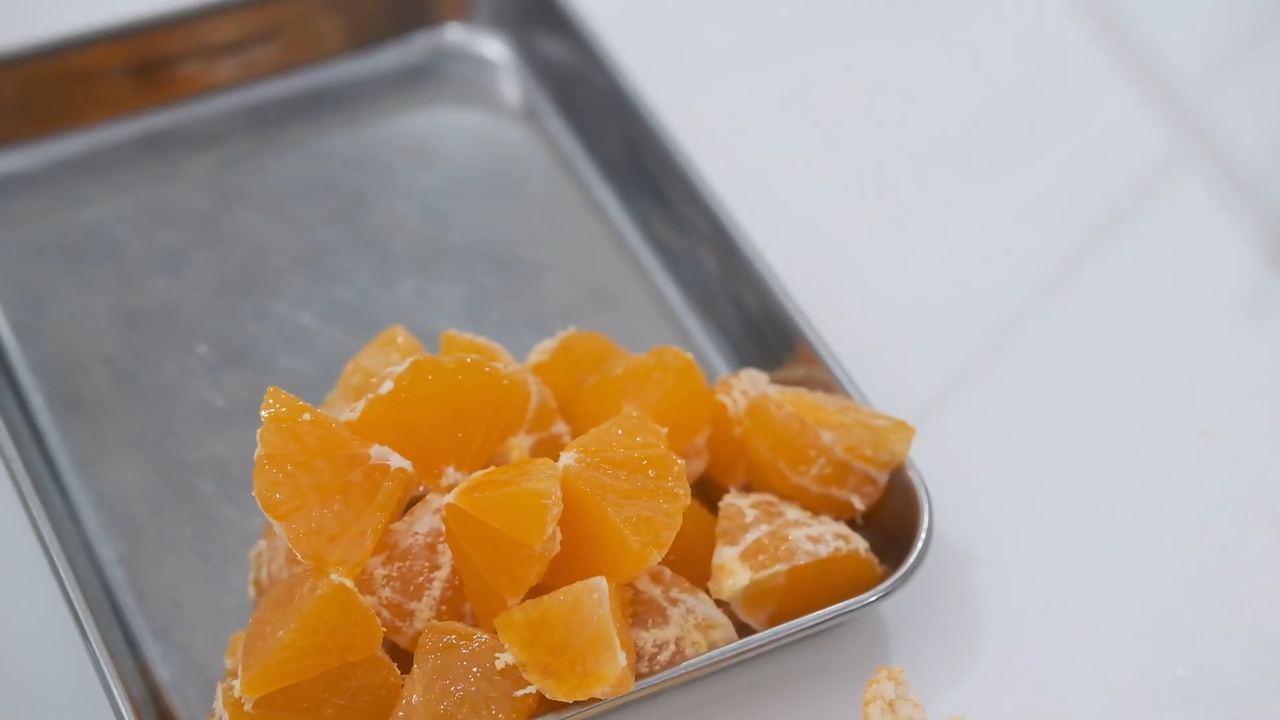 みかんは皮をむいて食べやすい大きさにカットする。- 2