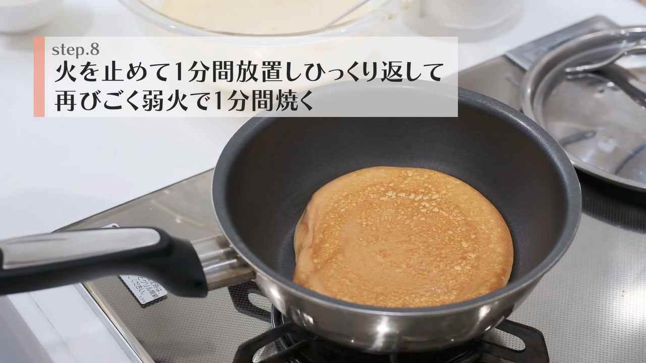 火を止めて1分間放置し、ひっくり返して再びごく弱火で1分間焼く。- 4