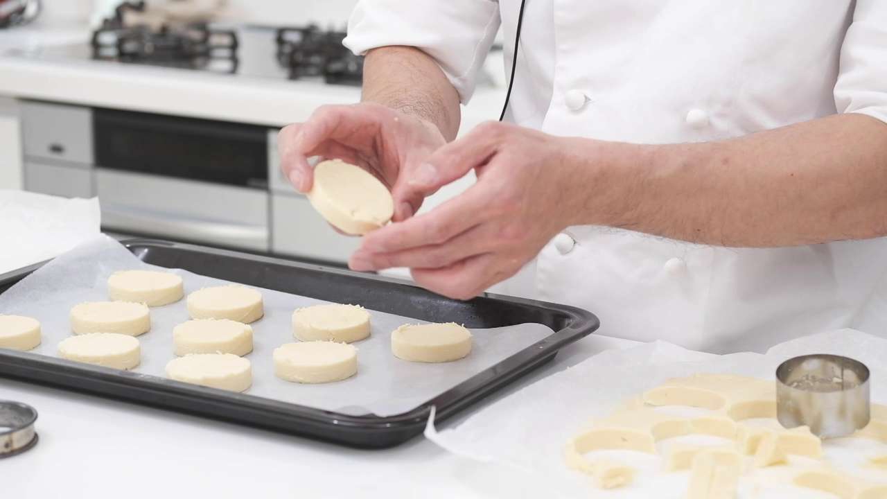 直径5.5cmの型で抜いて、天板に並べる。- 8