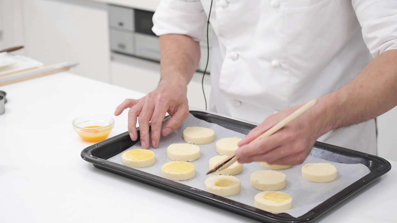 刷毛で卵黄を薄く塗り、冷蔵庫で冷やす。- 9
