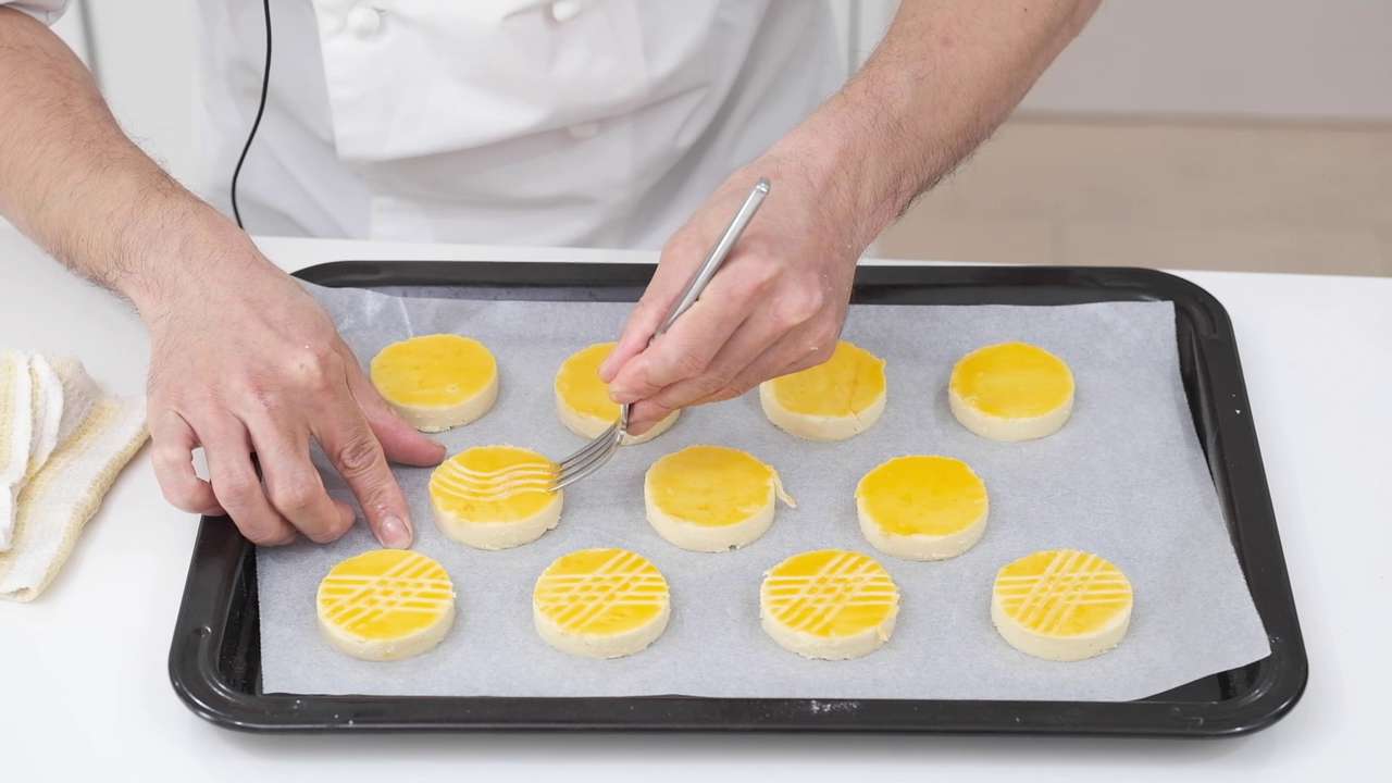 すぐにフォークなどで模様(すじ)を付ける。- 11