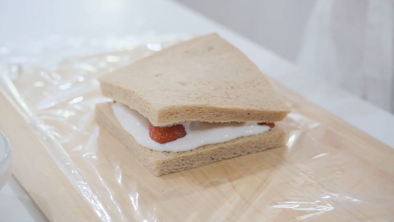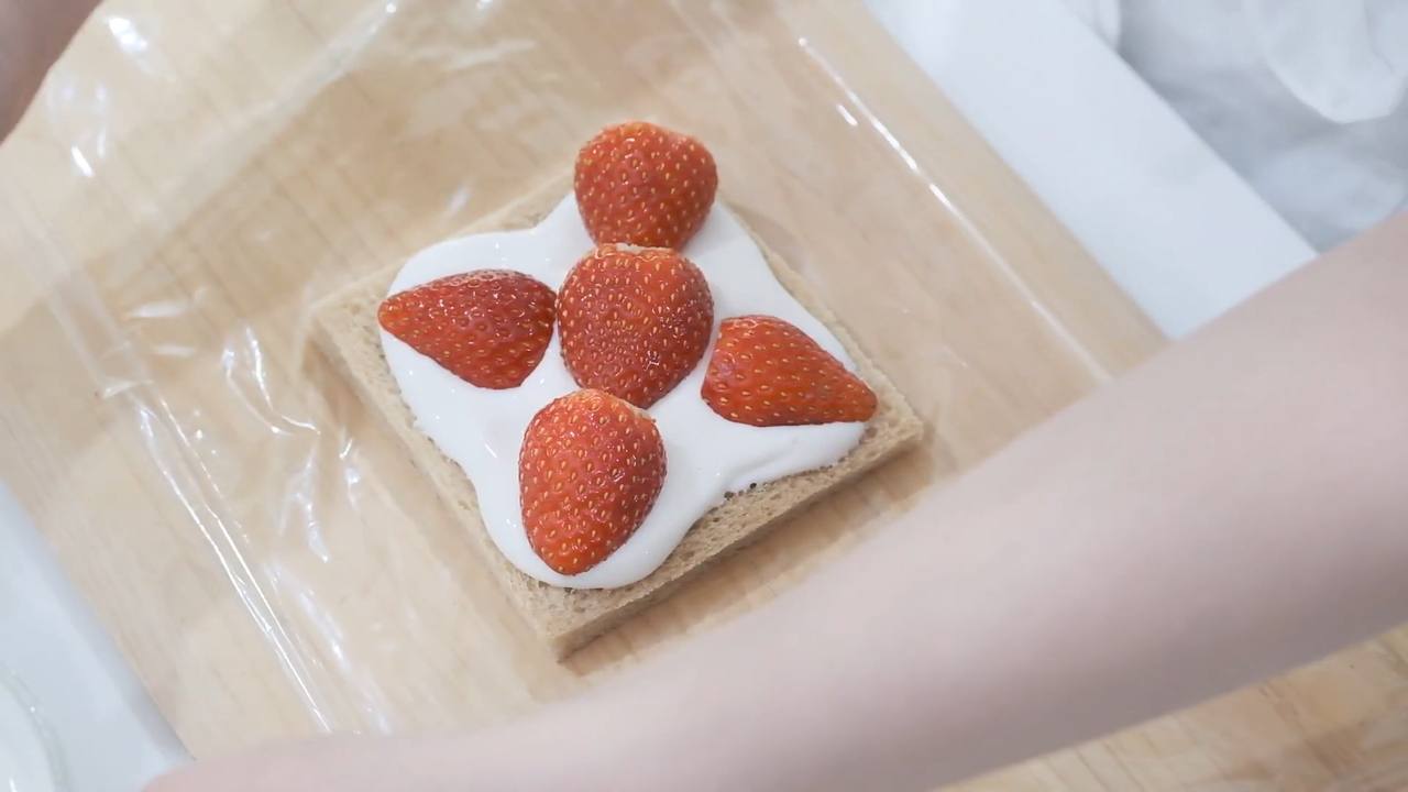 いちごの上にクリームをのせて、もう1枚のパンで挟む。- 4