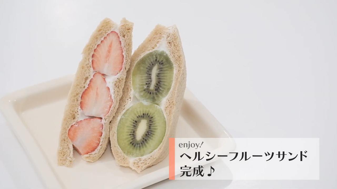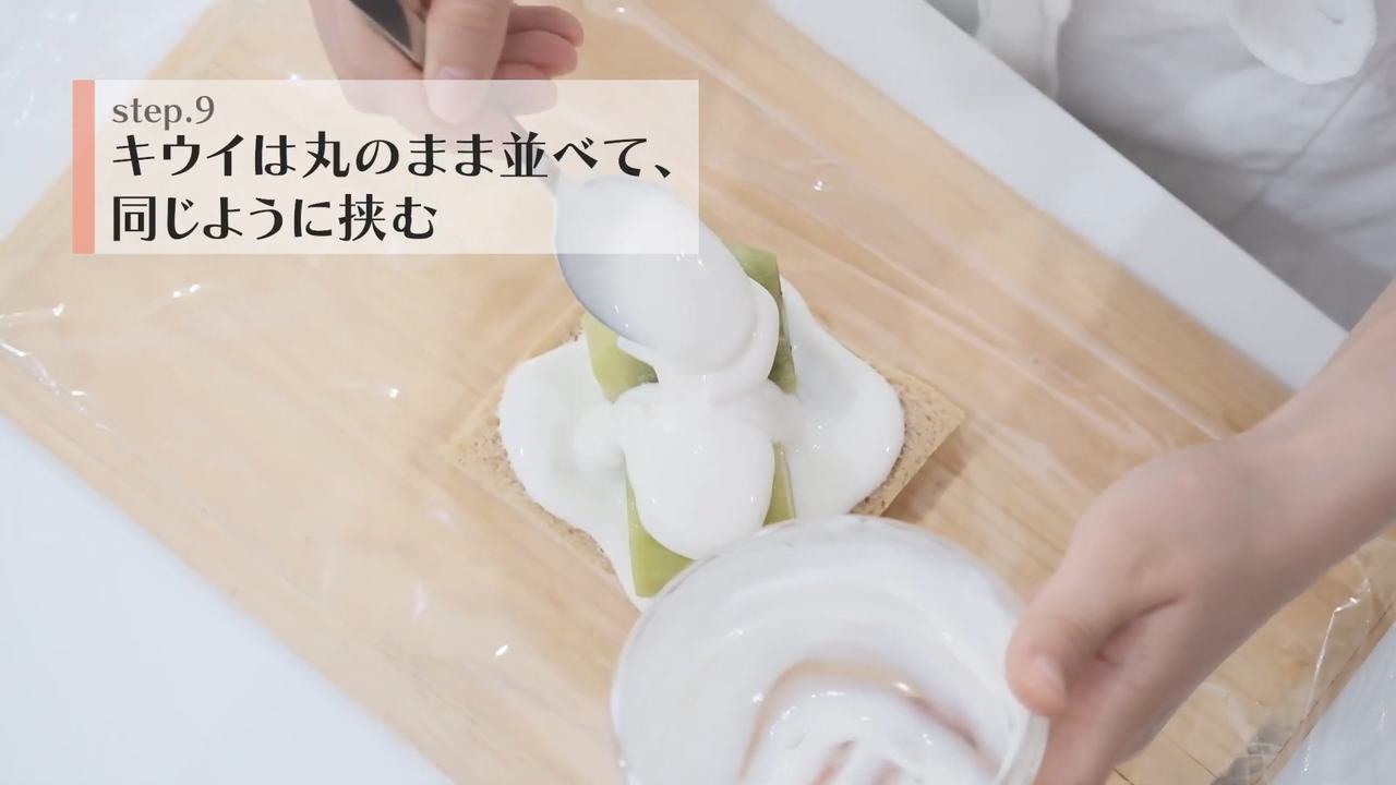 キウイは丸のまま並べて同じように挟み、いちごサンドと一緒に冷蔵庫で1時間位冷やす。