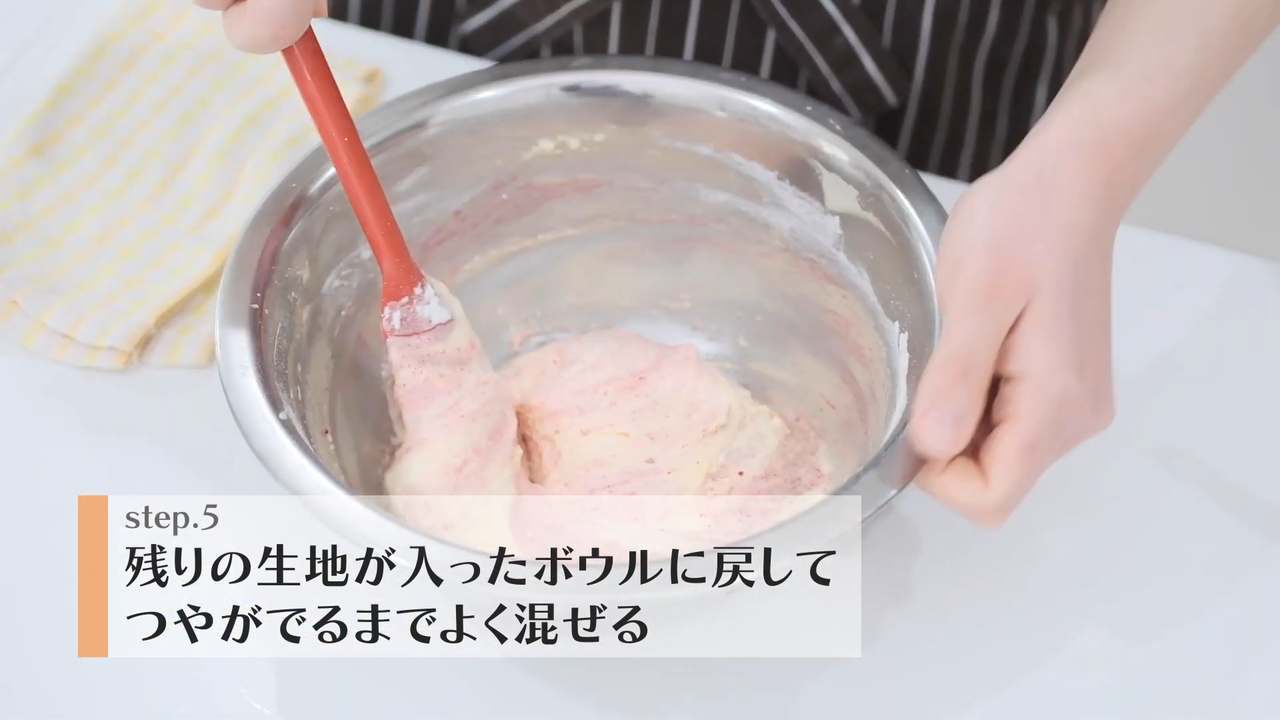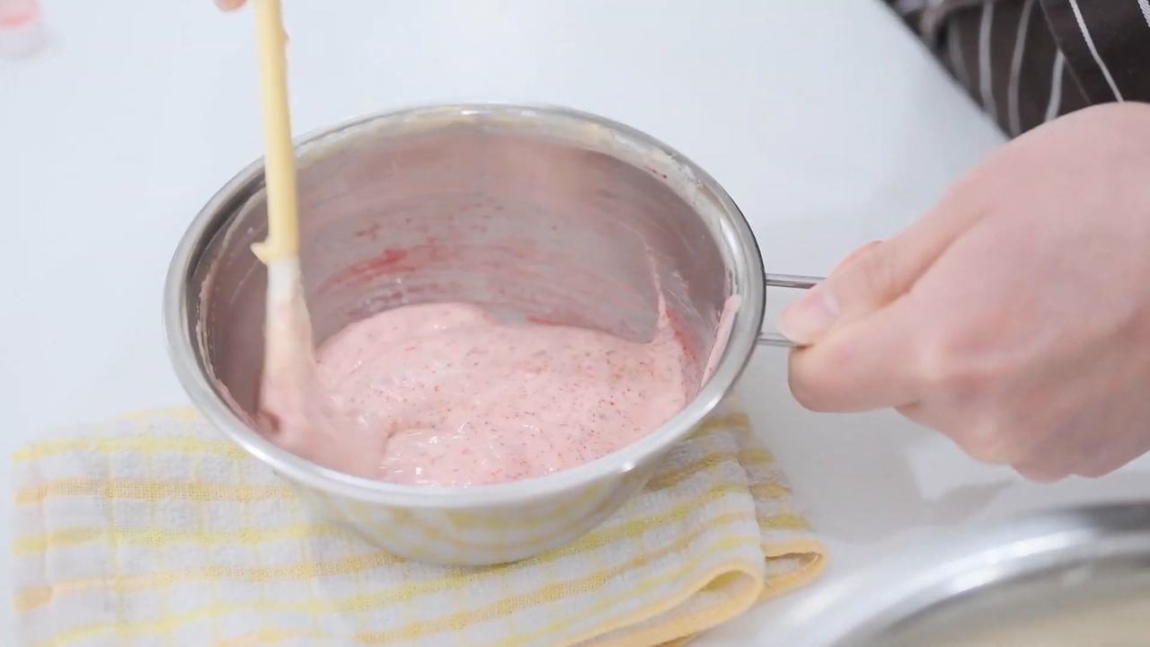 生地の一部とフランボワーズパウダーと色粉を混ぜる。- 6