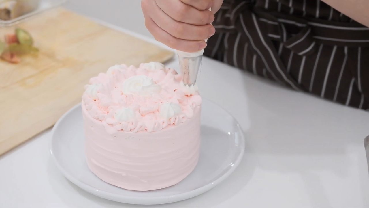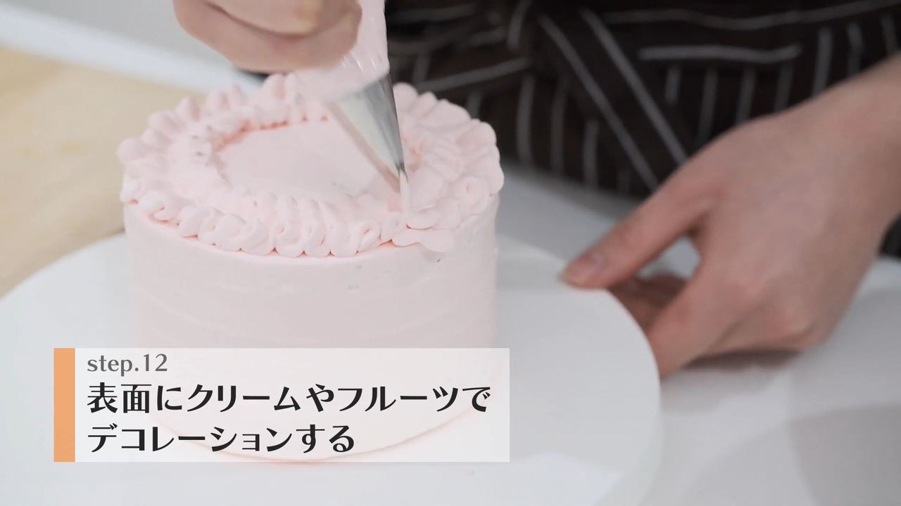 バラ口金を付けた絞り袋にクリーム(ピンク)を入れてフリルのように絞る。- 7