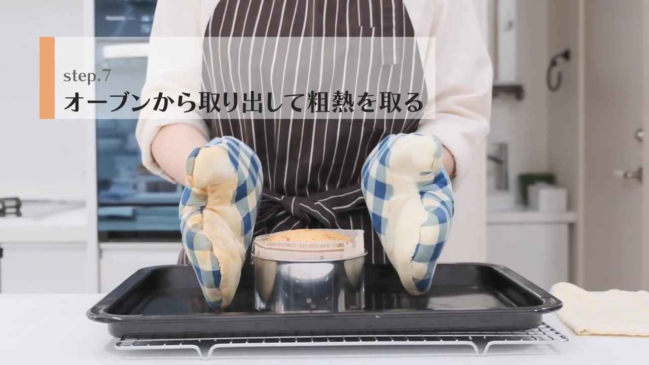 オーブンから取り出し、型を落として蒸気を抜く。粗熱を取る。