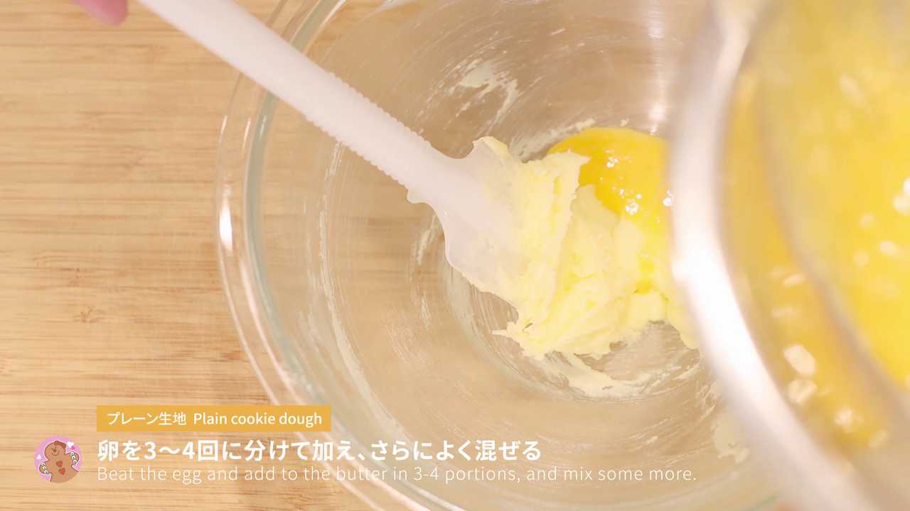 卵を3〜4回に分けて加え、さらによく混ぜる- 4