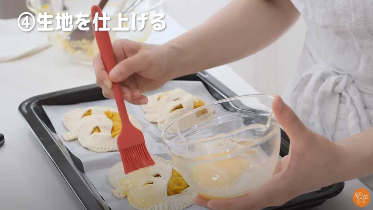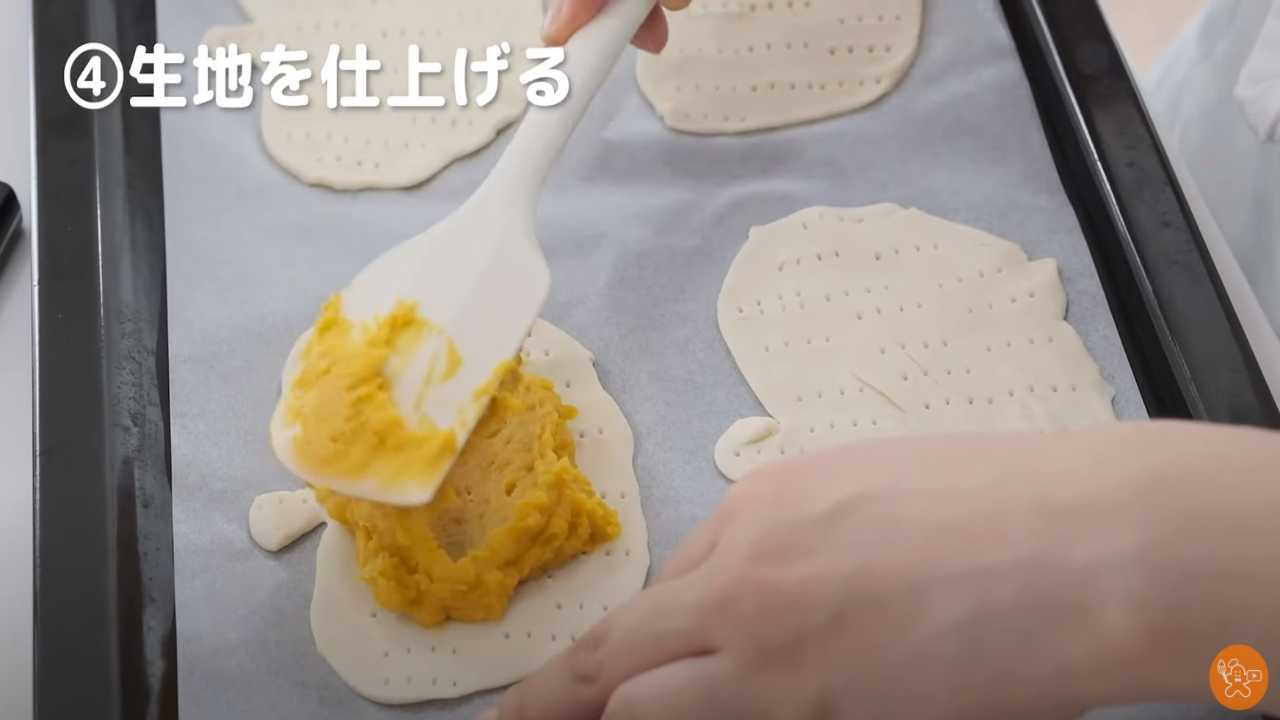 フィリングを4等分にして、(B)のパイシートにのせる。