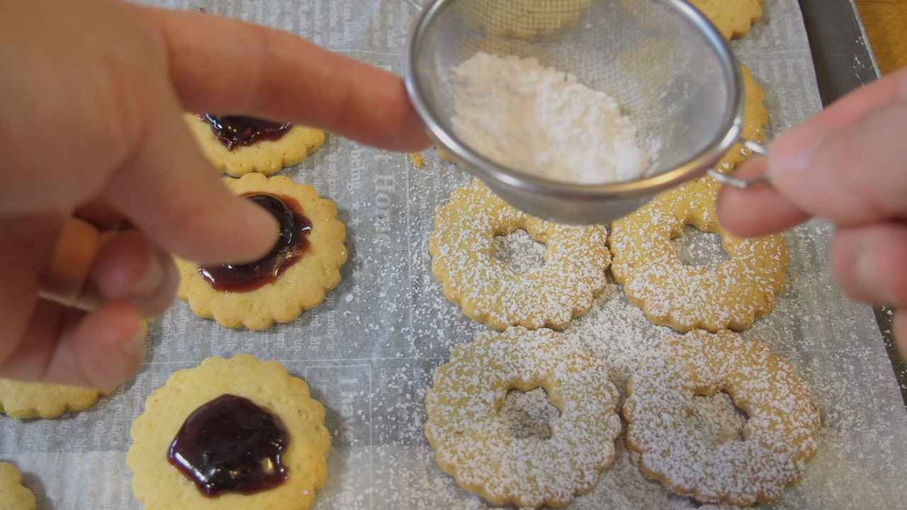 上に乗せるクッキー生地だけ粉糖をふるいかけておく。