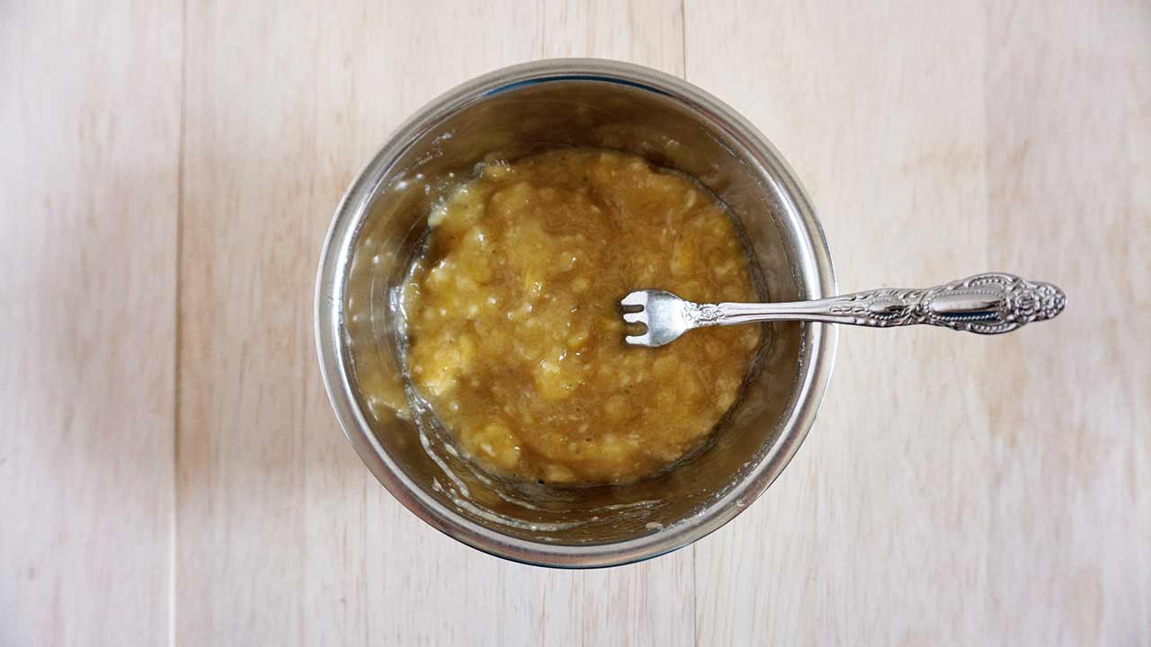 米粉で作る生地をさらにしっとり仕上げるため、今回はバナナを加えました。