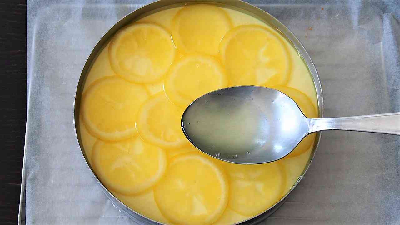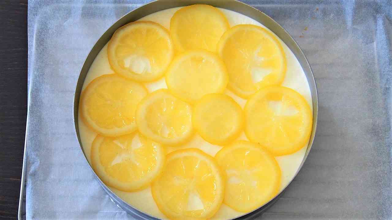 ムースが冷えていたらシロップを切ったレモンを上に並べる。- 17