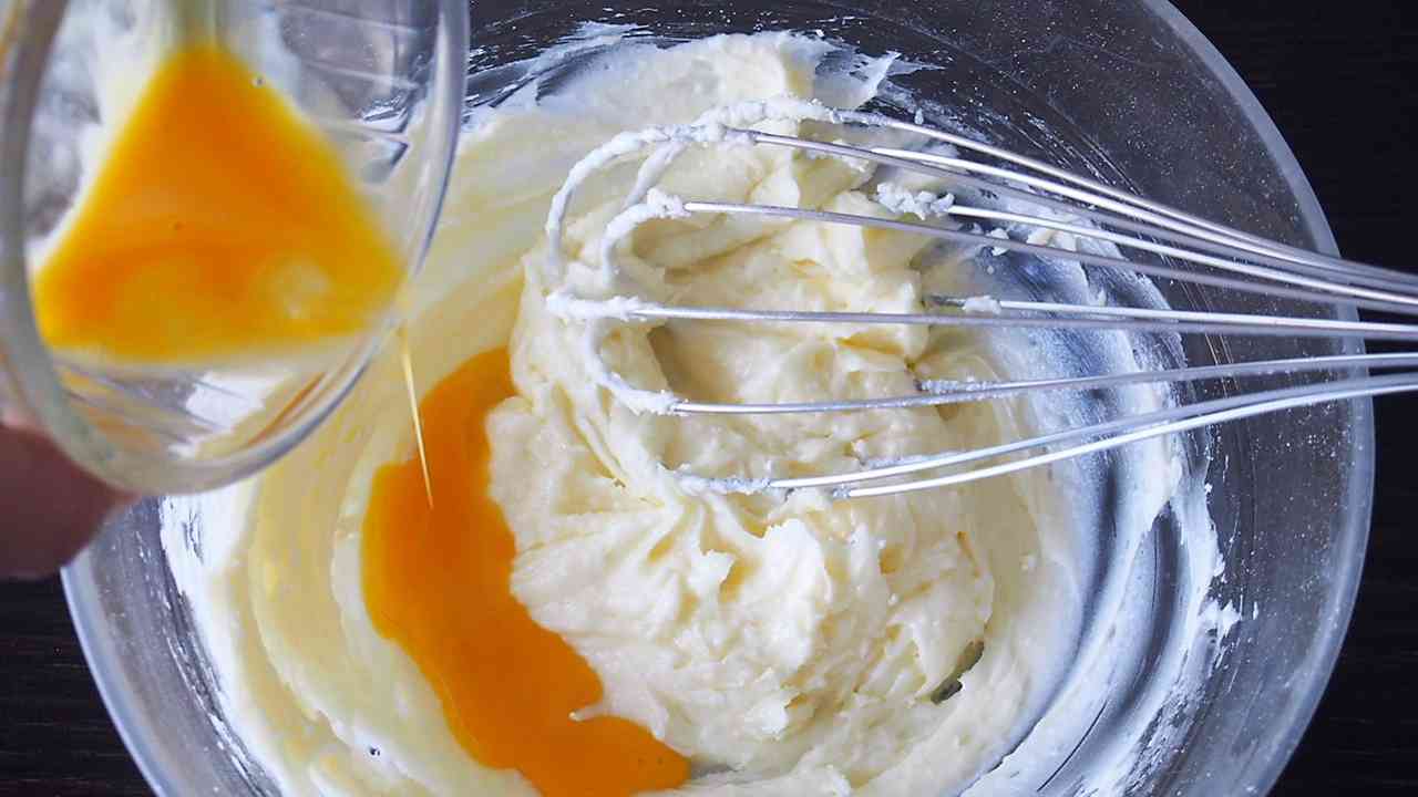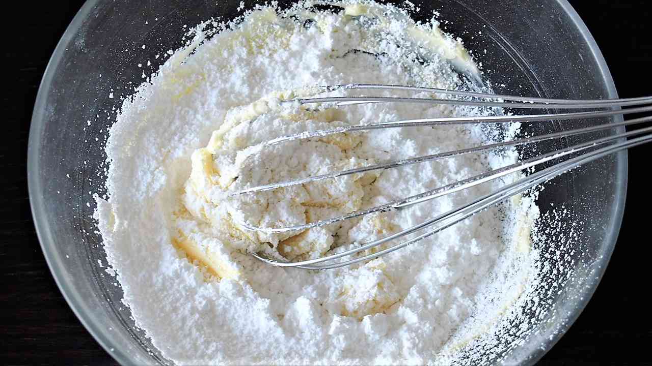 常温に戻したバターに粉糖を加えて混ぜる。- 2