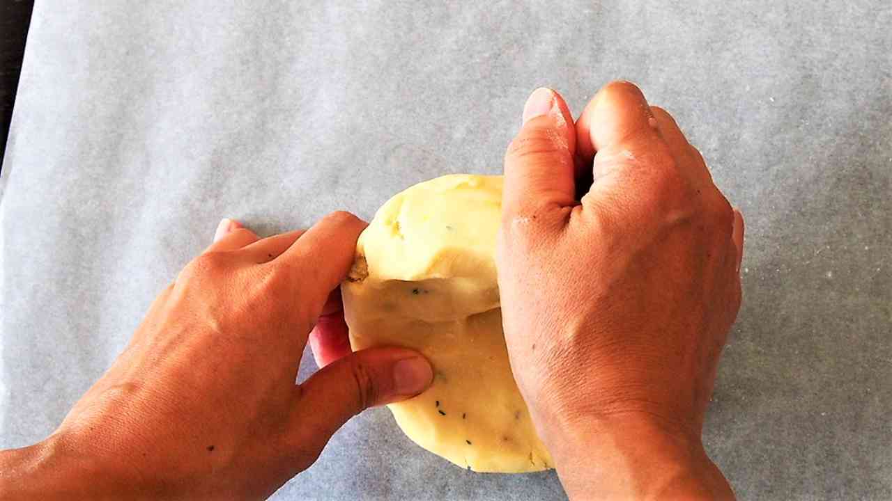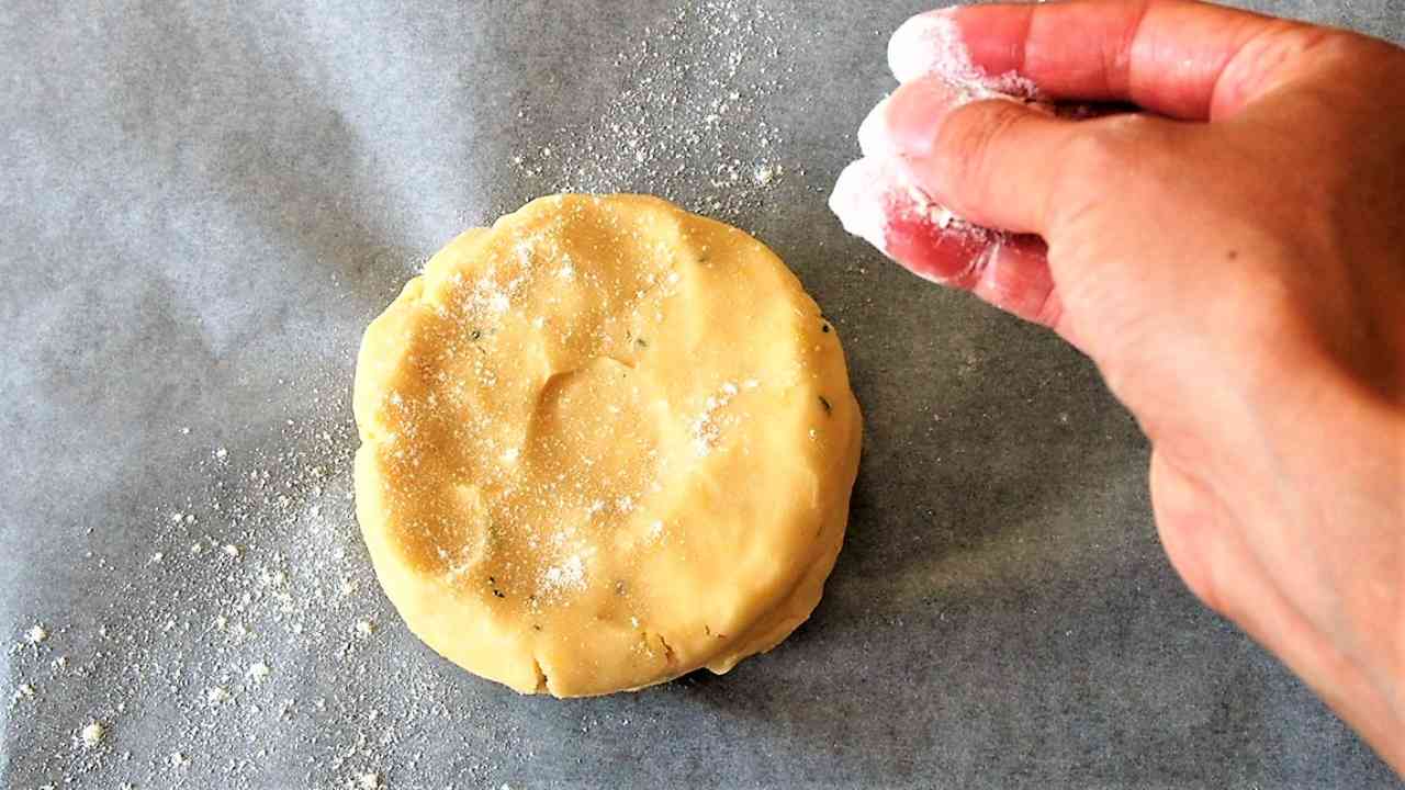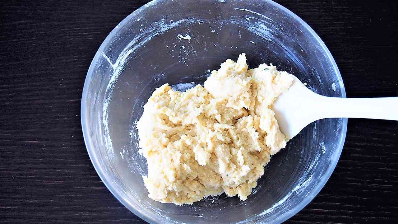生地がまとまったらラップをして2時間ほど冷蔵庫で冷やす。- 5