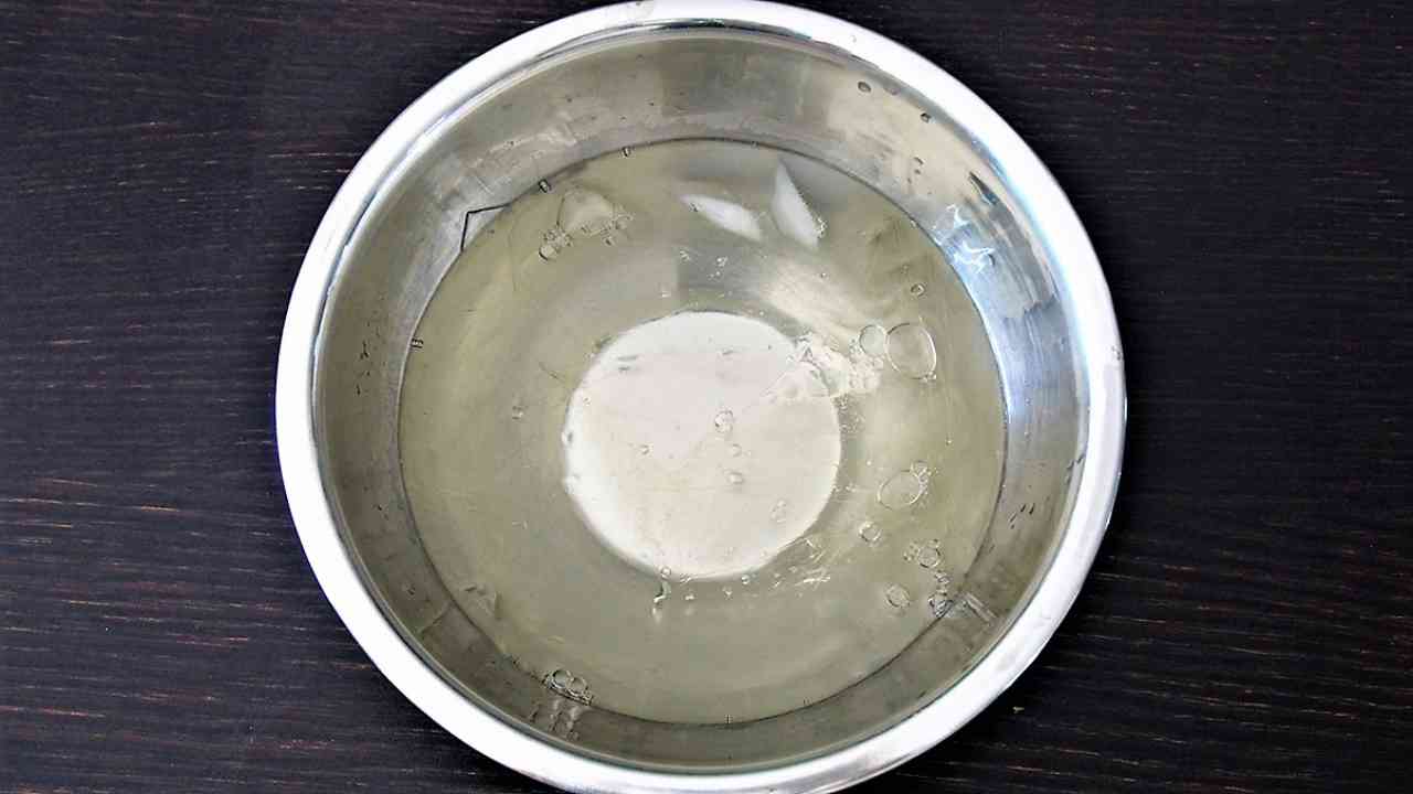 冷やしている間にジュレを作る。ふやかしたゼラチンをレンジで溶かしレモンをつけていたシロップを100gと水50gを合わせたものを加えて混ぜる。