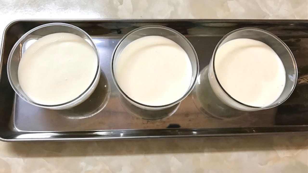 器に静かに流し入れて冷蔵庫で冷やし固めます。