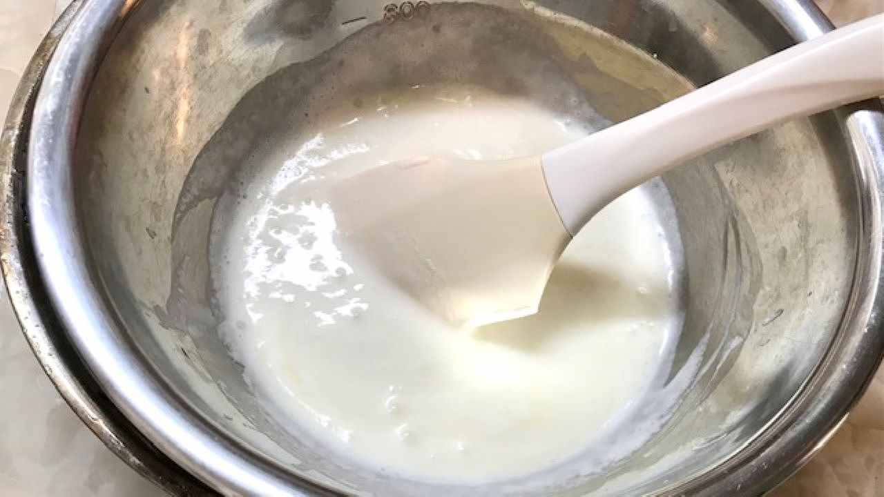 3をボウルに移して、底を氷水につけてとろみが出てくるまで混ぜます。※生クリームのとろみ加減と同じにすることがポイント!