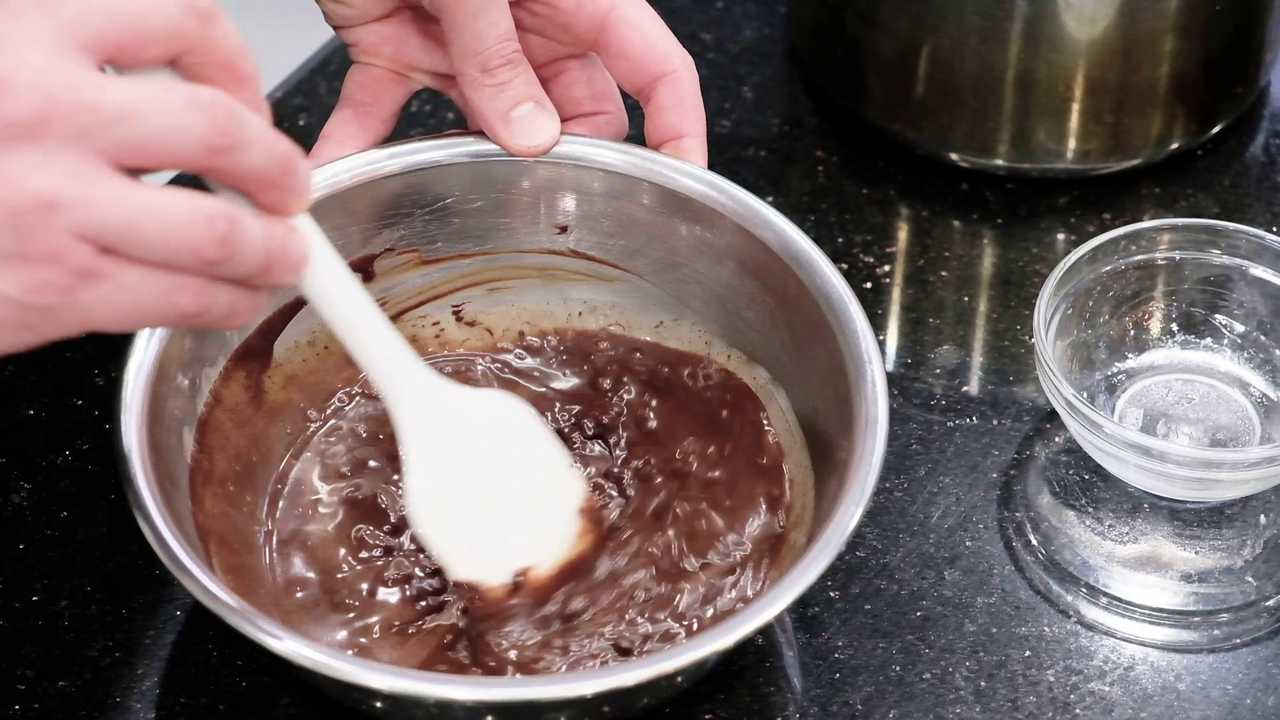 溶かしたチョコレートをイタリアンメレンゲに加える。