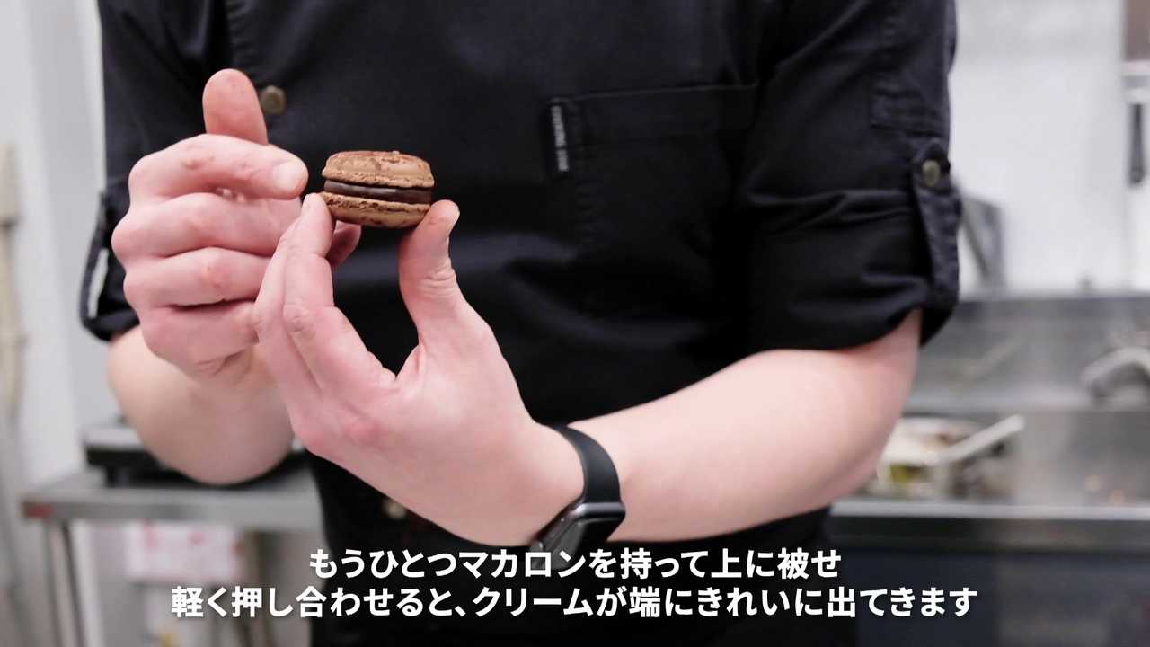 今日作ったマカロンはその日に食べることができますが、冷蔵庫で半日〜1日休ませると、生地にガナッシュの水分がまわり、よりしっとり食感に。