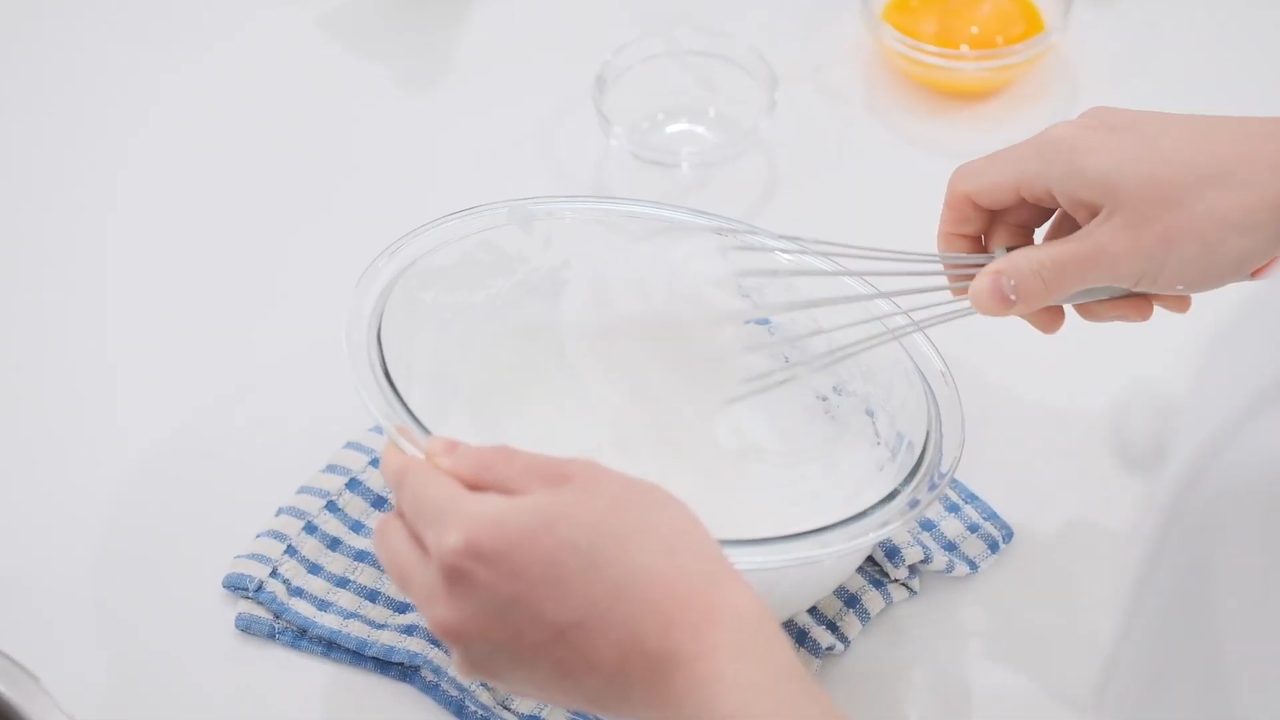 別のボウルに卵白を入れて泡立てる。