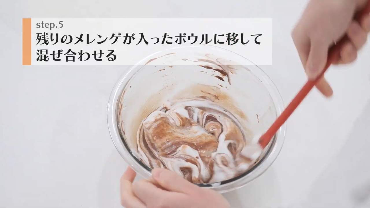 残りのメレンゲが入ったボウルに移して混ぜ合わせる。- 7