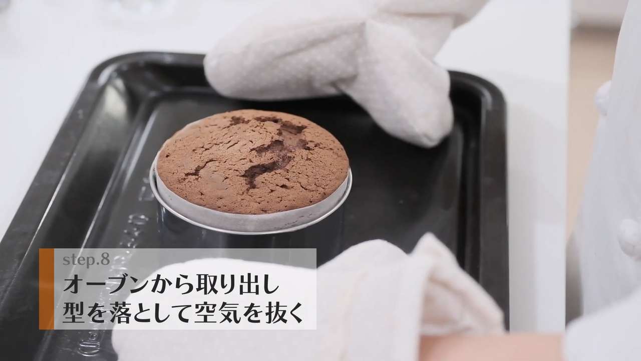 オーブンから取り出し、型を台に落として空気を抜く。粗熱を取る。