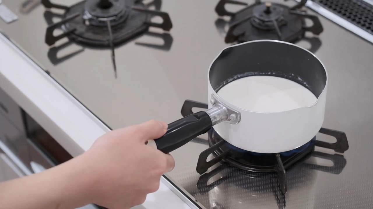 鍋に生クリームと水を入れて沸騰させる。- 3