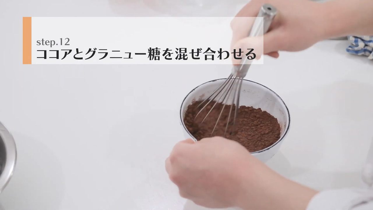 ココアとグラニュー糖を混ぜ合わせる。- 4