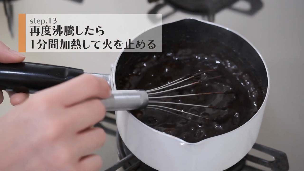 再び加熱して沸騰したら、1分間加熱して火を止める。- 6