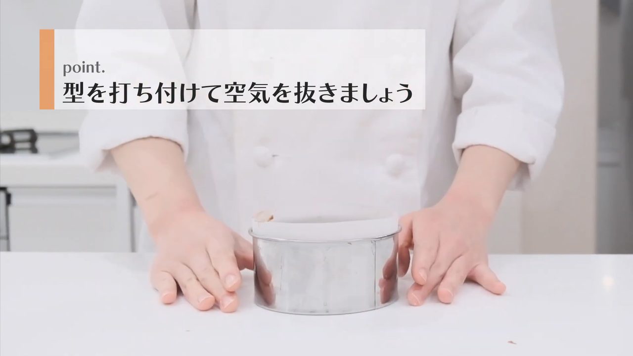 セルクルに流し入れ、表面をならす。- 9