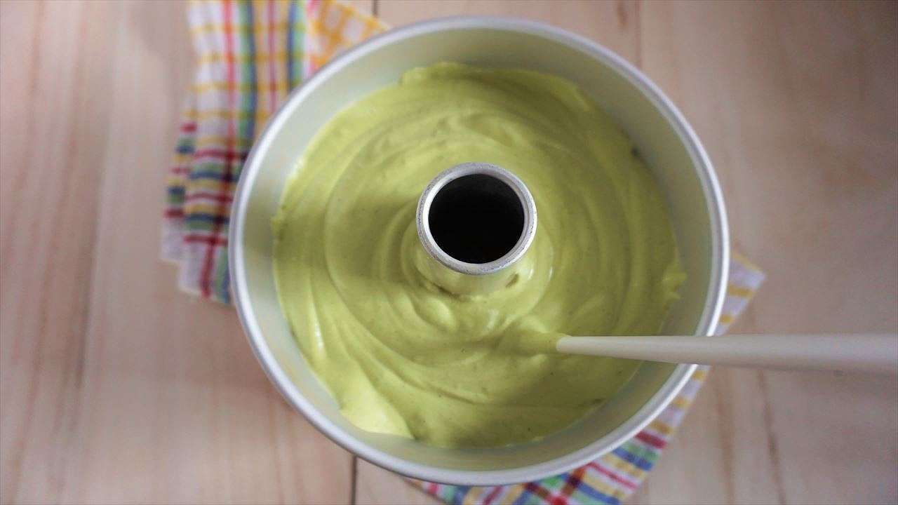 10の生地をシフォン型に流し込む。
