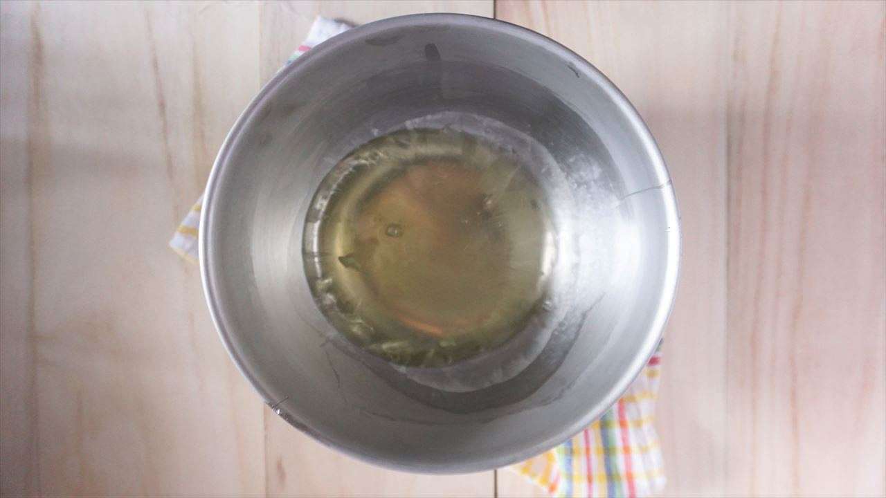 卵白は使う10分程前に冷凍庫に入れて冷やしておく。(卵白の周りが薄く凍り始めたぐらいが理想。)