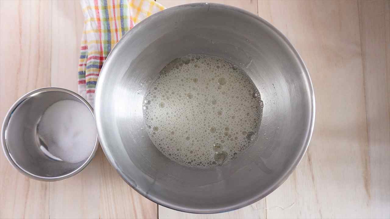 ※画像のような状態で1回目のグラニュー糖を入れる。