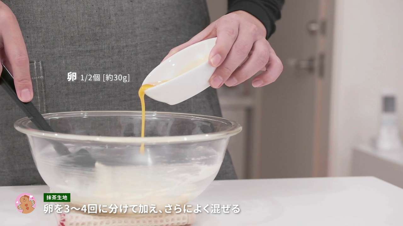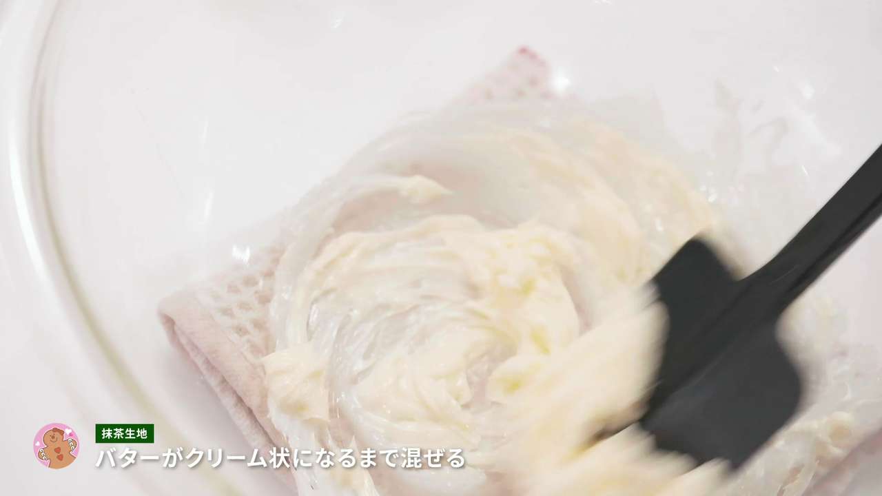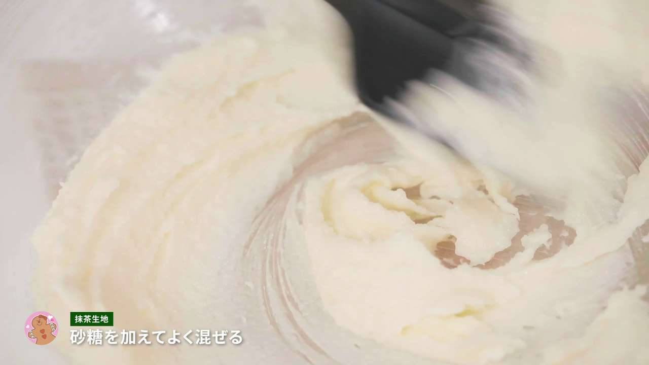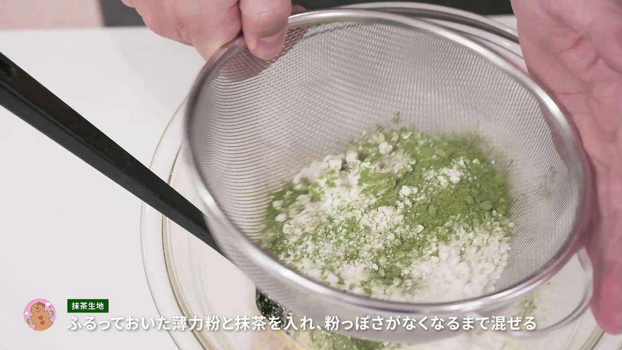 ふるっておいた薄力粉と抹茶を入れ、粉っぽさがなくなるまで混ぜる- 5