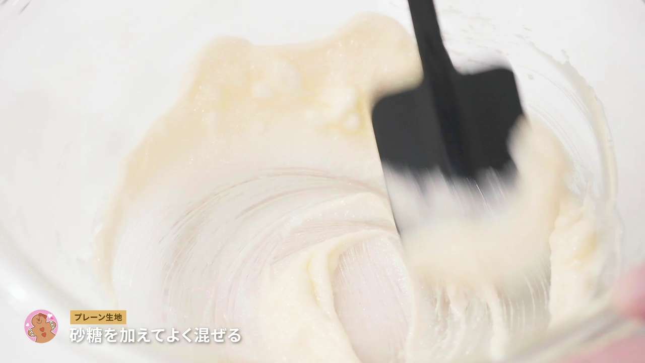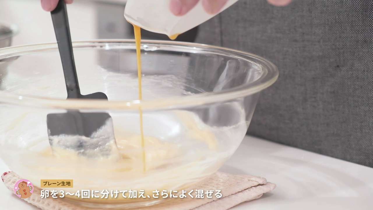 卵を3〜4回に分けて加え、さらによく混ぜる- 4